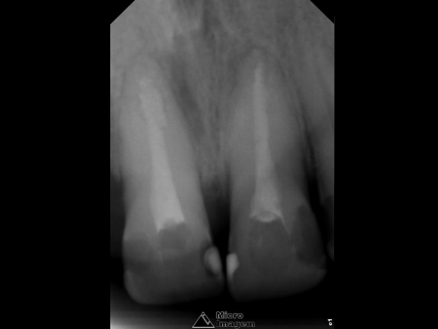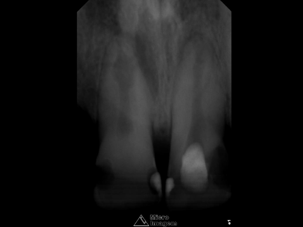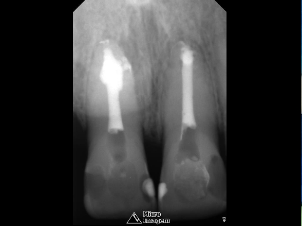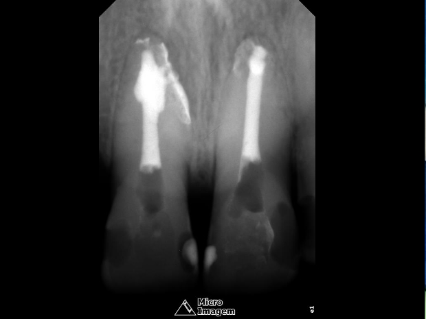 Paciente do gênero masculino, 32 anos, apresentou-se com quadro clínico de necrose pulpar dos elementos dentais 11 e 12 (figura 1), associado à presença de reabsorção interna, sendo submetido ao tratamento endodôntico em ambos os elementos.