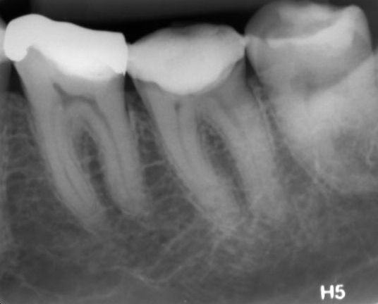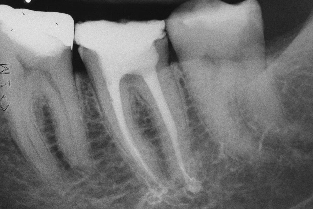 Paciente do gênero feminino, 56 anos de idade e caucasiana compareceu ao consultório se queixando de dor espontânea, pulsátil, que não cessava com o uso de analgésicos e anti-inflamatórios na região de mandíbula esquerda. Apresentou resposta negativa para o teste de palpação apical e percussão vertical e lateral em todos os dentes do referido quadrante. Aos testes térmicos apresentou resposta positiva exacerbada e de longa duração tanto ao frio quanto ao calor apenas no dente 37. Nos outros dentes do quadrante apresentou resposta positiva leve e de curta duração ao frio e negativa ao calor.